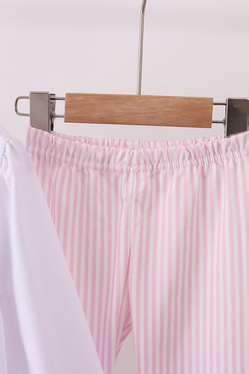 Girls Pink Christmas Tree Embroidery Pants Set